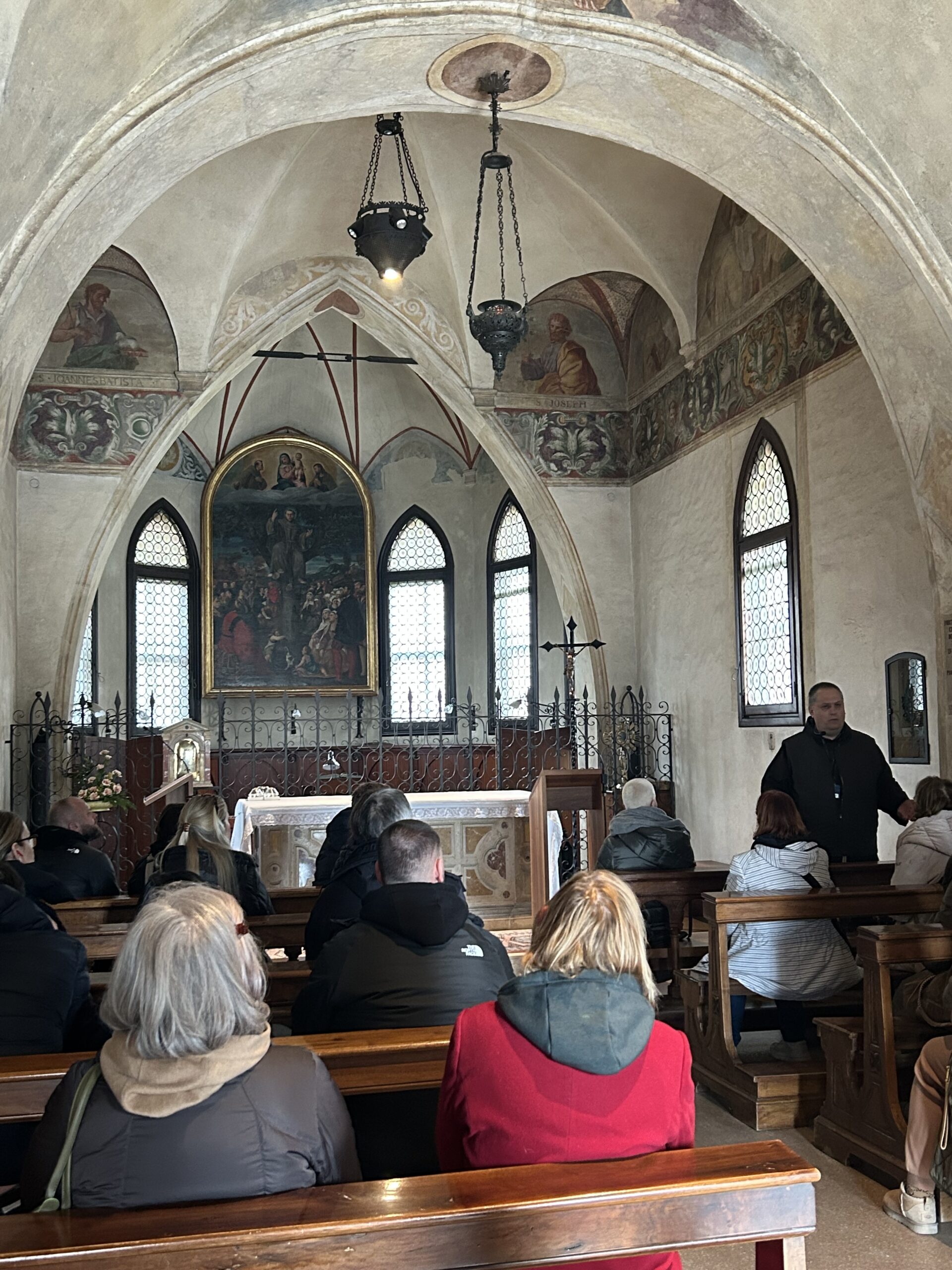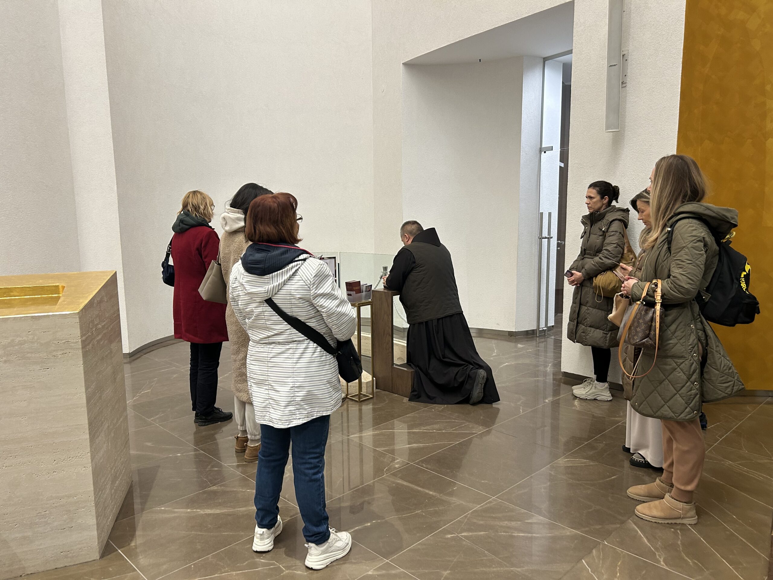 naše hodočašće započelo je ranim polaskom i molitvom za sretan put kod groba fra Ante Antića, gdje smo Gospodinu povjerili svoje nakane. Po dolasku u Padovu obišli smo Baziliku svetog Antuna Padovanskog, zadržavajući se u molitvi i zahvalnosti. Nastavili smo prema Svetištu sv. Leopolda Mandića, gdje smo sudjelovali na svetoj misi. Posebnu radost donio je susret s bratstvom Frame Kaptol i zajedničko euharistijsko slavlje koje je predvodio fra Ivan Maletić uz koncelebraciju fra Davora Palića, a koje je dodatno učvrstilo naše zajedništvo i obogatilo nas duhovnom radošću.