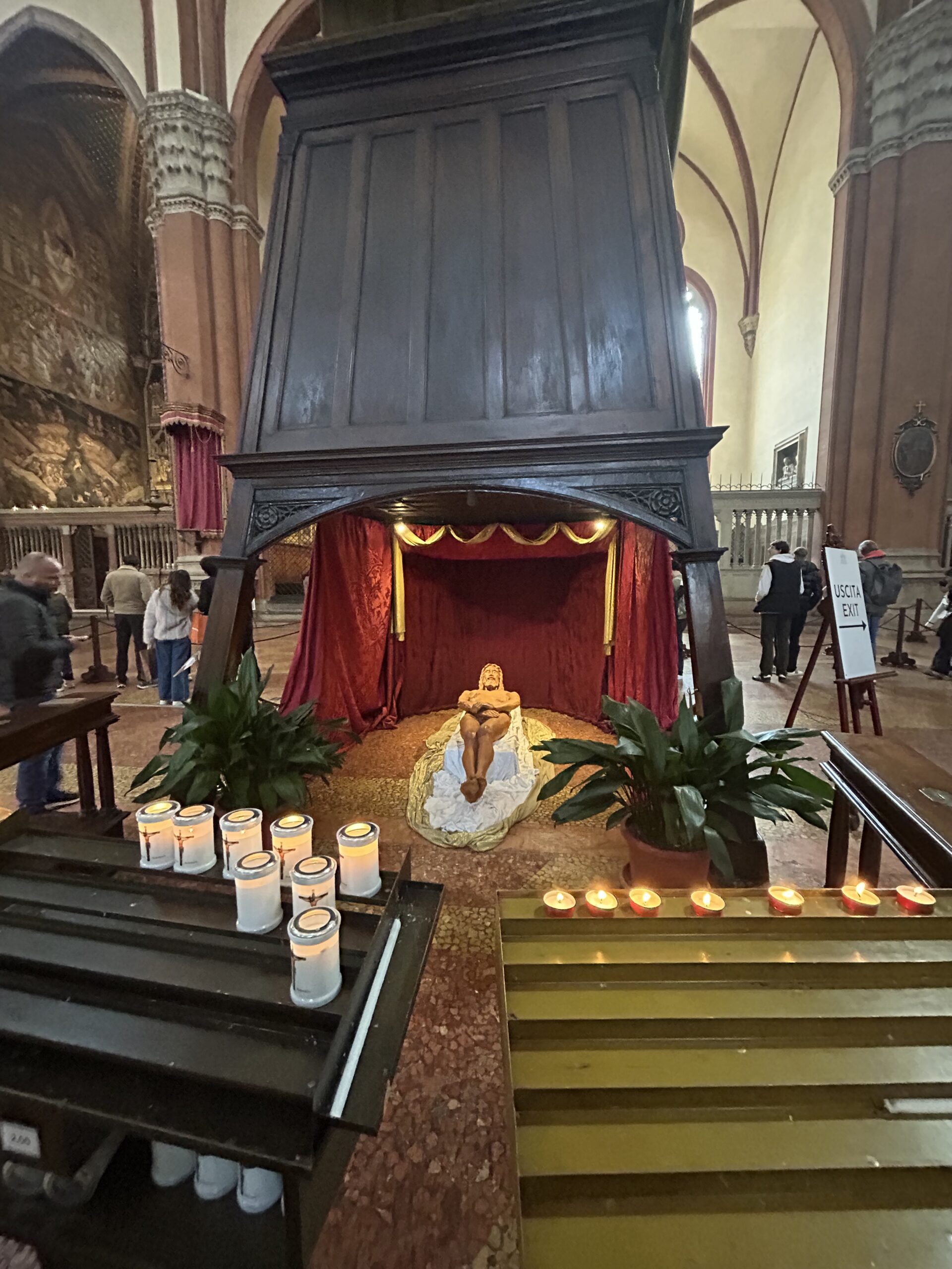 Put nas dalje vodi u Ferrara u crkvu Santa Maria in Vado mjesto euharistijskog čuda. Fra Ivan nas upoznaje govoreći da je tijekom mise iz posvećene hostije potekla krv i dotaknula svod iznad oltara. Taj događaj snažno i impresivno svjedoči istinu koju Crkva ispovijeda: Krist je stvarno prisutan u euharistiji. Kristova Krv nije znak osude, nego savez ljubavi. Ona govori o Bogu koji ne ostaje dalek, nego ulazi u našu povijest, prihvaća trpljenje i daruje sebe do kraja. U Ferrari smo snažno osjetili da euharistija nije simbol, nego susret , živi dodir s Raspetim i Uskrslim. Stojeći pred tim otajstvom, postaje jasno: kao što su sveci dopustili da ih Kristova milost preobrazi, tako smo i mi pozvani živjeti od tog dara. Obraćenje, oproštenje i novi početak nisu plod naše snage, nego plod Njegove prolivene Ljubavi.