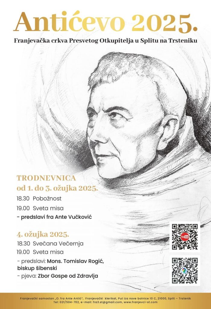 U ponedjeljak 4. ožujka 2024. godine u Samostanu o. Ante Antića u Splitu na Trsteniku, svečano je obilježena 59. obljetnica smrti časnoga sluge Božjega oca fra Ante Antića