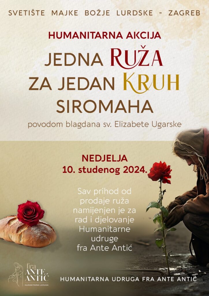I ove godine, povodom Svjetskog dana siromašnih i blagdana svete Elizabete, organiziramo akciju "Jedna ruža za jedan kruh siromaha". Akcija će se održati 10.11.2024. prodajom ruža u predvorju crkve.