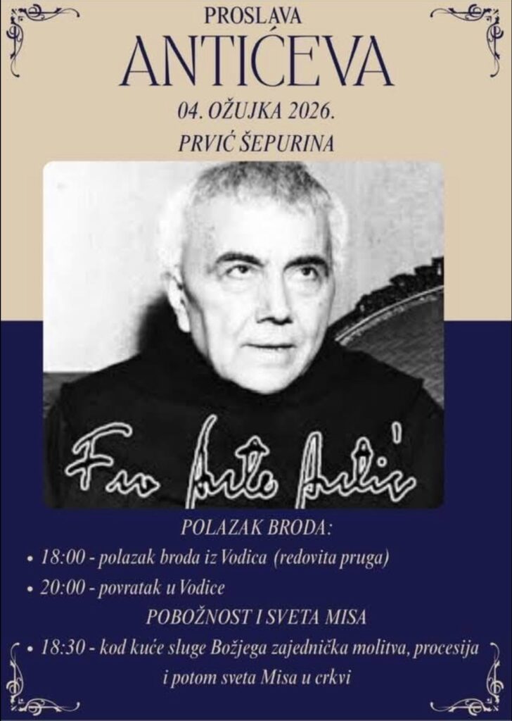 Dragi prijatelji i štovatelji fra Ante Antića, sve Vas pozivamo na mjesečne duhovne susrete „Duhovni tragovi fra Ante Antića“, koji će se održavati svakog 16. u mjesecu.