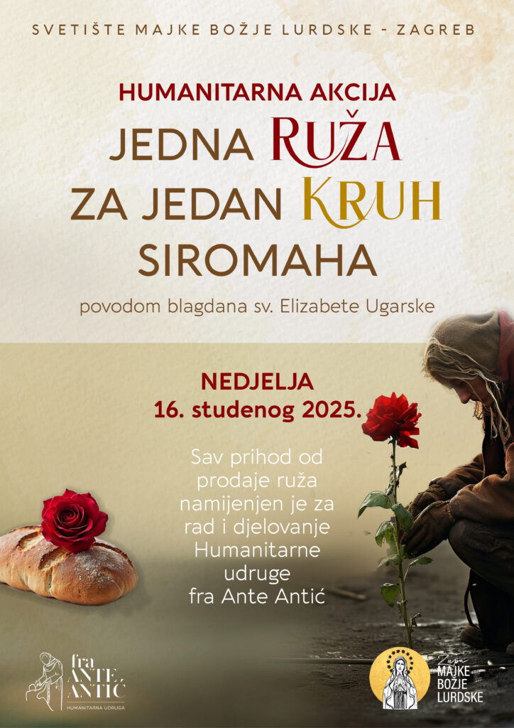 I ove godine, povodom Svjetskog dana siromašnih i blagdana svete Elizabete, organiziramo akciju "Jedna ruža za jedan kruh siromaha". Akcija će se održati 16.11.2025. prodajom ruža u predvorju crkve.