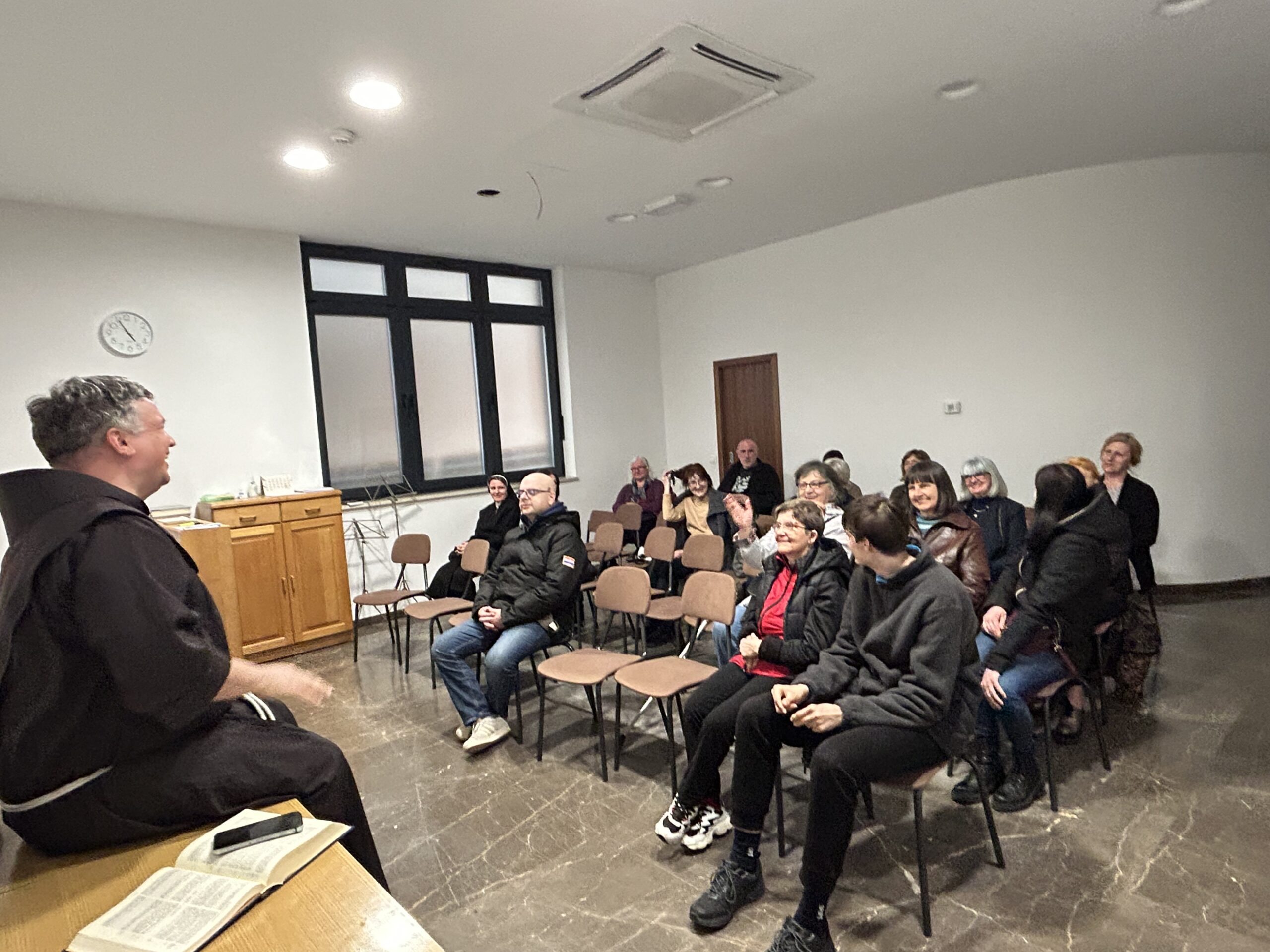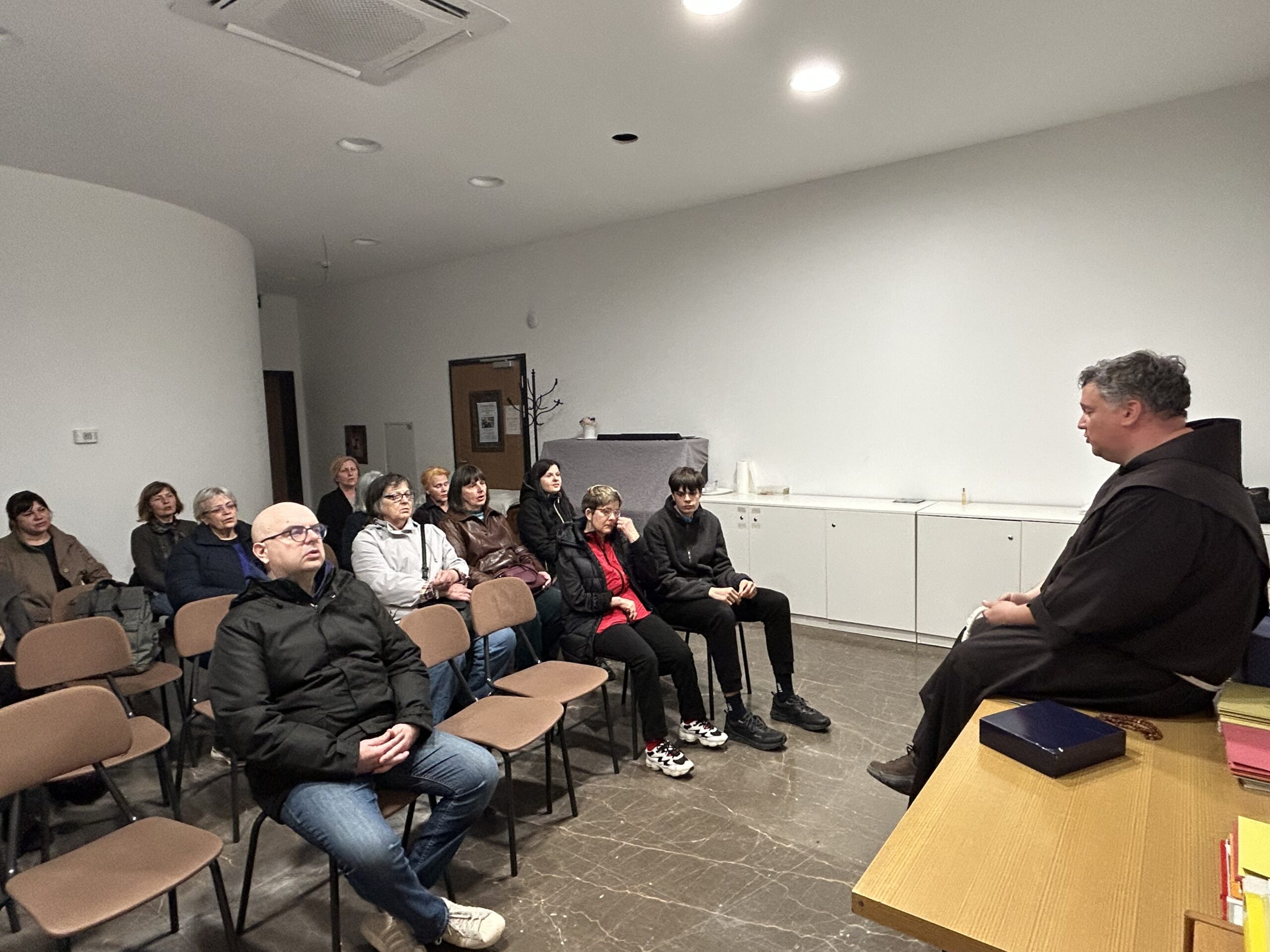 U ponedjeljak, 23. ožujka 2026. godine, održana je duhovna obnova za prijatelje, volontere i korisnike Humanitarne udruge fra Ante Antića te za volontere i korisnike župnog Caritasa. Duhovnu obnovu predvodio je župnik i gvardijan fra Ante Bešlić. Susret je započeo spontano, jednostavno i vrlo srdačno, bez velike formalnosti, ali upravo zato u ozračju blizine i prihvaćenosti. Već na samom početku osjećalo se zajedništvo, kao da se ne okuplja skupina ljudi koja ima obvezu, nego zajednica koja ima isto srce i isti cilj služiti Bogu služeći ljudima. Svatko se mogao osjetiti važnim i potrebnim, a to je možda i najljepši početak svake duhovne obnove. Nakon uvodnog dijela molili smo Krunicu Božanskog milosrđa, uranjajući u otajstvo Božje ljubavi koja se ne umara od čovjeka. U toj molitvi posebno smo mogli osjetiti da Caritas nije samo organizacija koja pomaže, nego prije svega mjesto gdje se susreće Božje milosrđe i ljudska potreba. Volonter nije samo onaj koji daje svoje vrijeme, nego onaj koji postaje znak Božje blizine čovjeku koji pati, koji je sam, zaboravljen ili potreban riječi utjehe. U svom nagovoru fra Ante je govorio o važnosti i ulozi volontera rekavši kako su volonteri svojevrsno krilo svake župe. Oni su produžena ruka župe prema onima koji su na rubu, prema bolesnima, starima, siromašnima i usamljenima. Posebno je naglasio kako su ljudi i susreti neizmjerno važni jer nas upravo susreti mijenjaju, povezuju i oblikuju. Čovjek raste kroz susret s drugim čovjekom. U tom smislu spomenuo je i lik fra Ante Antića koji je bio čovjek susreta. On nije radio velike stvari u očima svijeta, ali je činio velike stvari u srcima ljudi kroz ispovijed, razgovor, savjet i kroz jednostavnu prisutnost. Znao je slušati čovjeka i dati mu vremena, a ponekad je upravo to najveća pomoć. Posebno je snažno odjeknula misao fra Ante Antića kako je znao ljudima reći da im ne može pomoći niti doprijeti do njih jer oni sami to ne dopuštaju, nemaju otvoreno srce. U toj rečenici vidi se velika poniznost i duboka duhovna mudrost oca Antića gdje sam priznanje da ne može sve, da ne može promijeniti drugoga i da nije spasitelj. Naše je posijati dobrotu, biti blizu, slušati, moliti i ljubiti, a Bog je onaj koji daje rast i mijenja ljudska srca. To je važno i za svakog volontera, jer ponekad želimo odmah vidjeti plodove, a pozvani smo prije svega biti vjerni, a ne uspješni. Nakon nagovora preselili smo se u kapelu gdje smo u tišini i molitvi zahvalili Bogu za sve darove, za sve ljude koje susrećemo kroz svoje volontiranje, za svaku priliku da nekome budemo ruka pomoći ili riječ ohrabrenja. U toj tišini svatko je mogao pred Boga staviti svoje srce, svoje umore, pitanja, ali i radosti koje proizlaze iz služenja drugima. Upravo je to bila i poruka ove duhovne obnove da kroz molitvu, služenje i susrete s ljudima polako rastemo i dopuštamo Bogu da djeluje kroz nas. Ova duhovna obnova još nas je jednom podsjetila na jednostavnost, otvorenost i blizinu fra Ante Antića. Njegova veličina bila je u malenosti, u jednostavnosti, u vremenu koje je darivao ljudima i u srcu koje je bilo otvoreno za svakoga. Neka i naša služba bude takva tiha, nenametljiva, ali puna ljubavi. Jer možda nećemo promijeniti cijeli svijet, ali ćemo promijeniti svijet jedne osobe, a to je u Božjim očima već jako puno. Od srca zahvaljujemo župniku i gvardijanu fra Anti na vremenu koje je odvojio za ovu duhovnu obnovu, na riječima ohrabrenja, blizini i duhovnim poticajima koje nam je uputio. Zahvaljujemo i gosp. Stjepanu Kelčiću na trudu i organizaciji susreta te svima koji su na bilo koji način sudjelovali u pripravi ove duhovne obnove. Neka Gospodin svima uzvrati za darovano vrijeme, dobrotu i služenje.