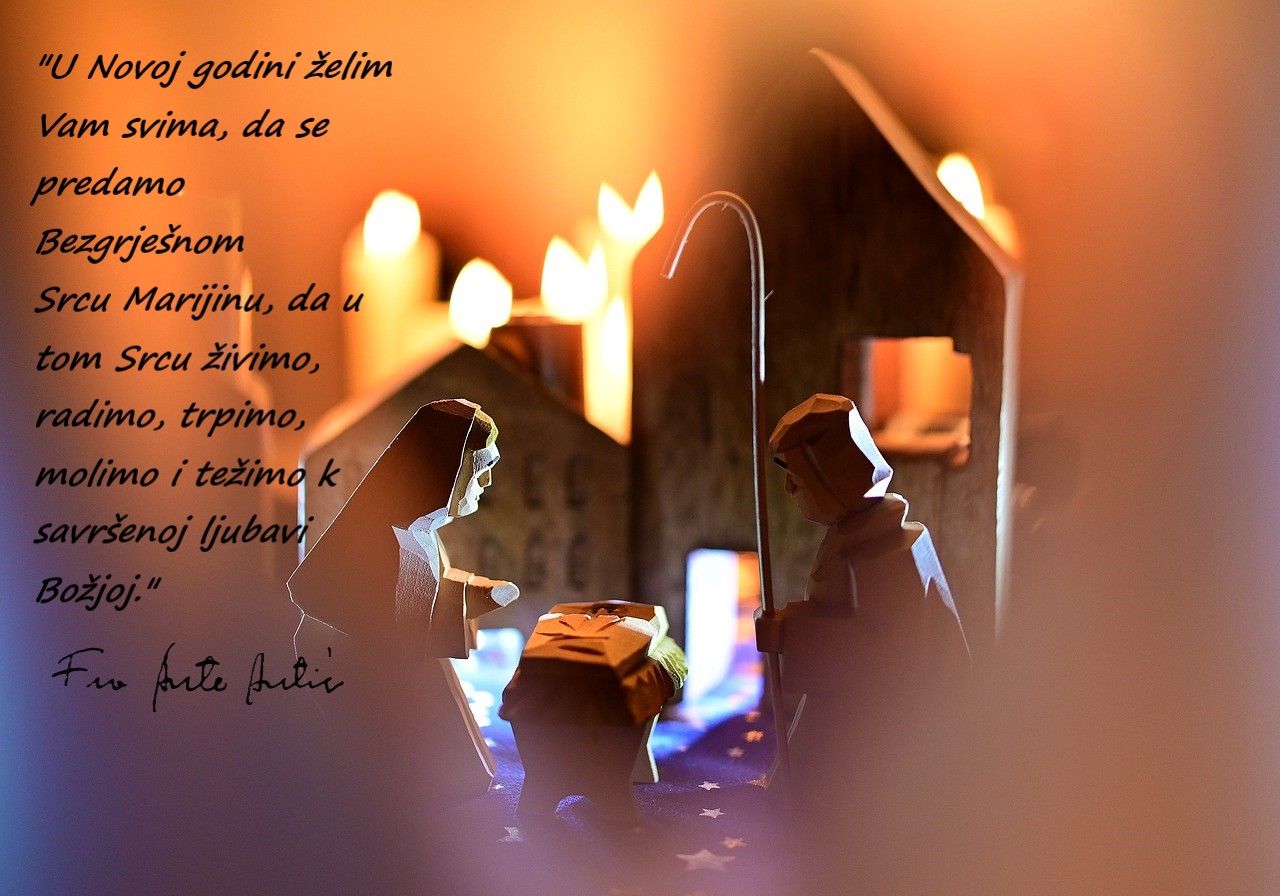 "U ovoj godini izgrađujte sebe i svoj duhovni život po primjeru i životu Djetića Isusa. U tom nek Vas pomaže Nebeska Majka i sv. Josip. To Vam želi uz ponovnu čestitku i sveti blagoslov odani brat."